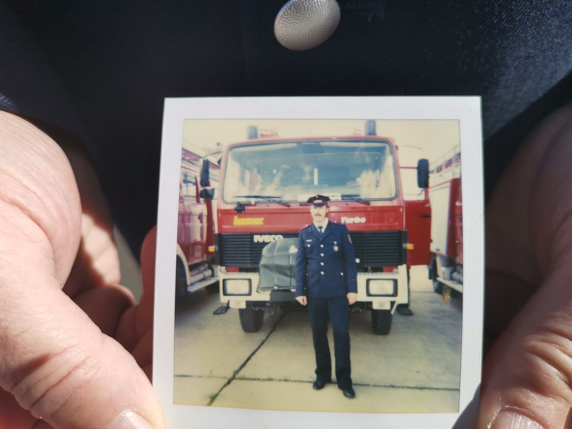 Maschinist: Karsten Kühn, der als Mitarbeiter des FD BKR schon 1993 unser erstes LF 16/TS von Bonn nach Roßlau überführt hat