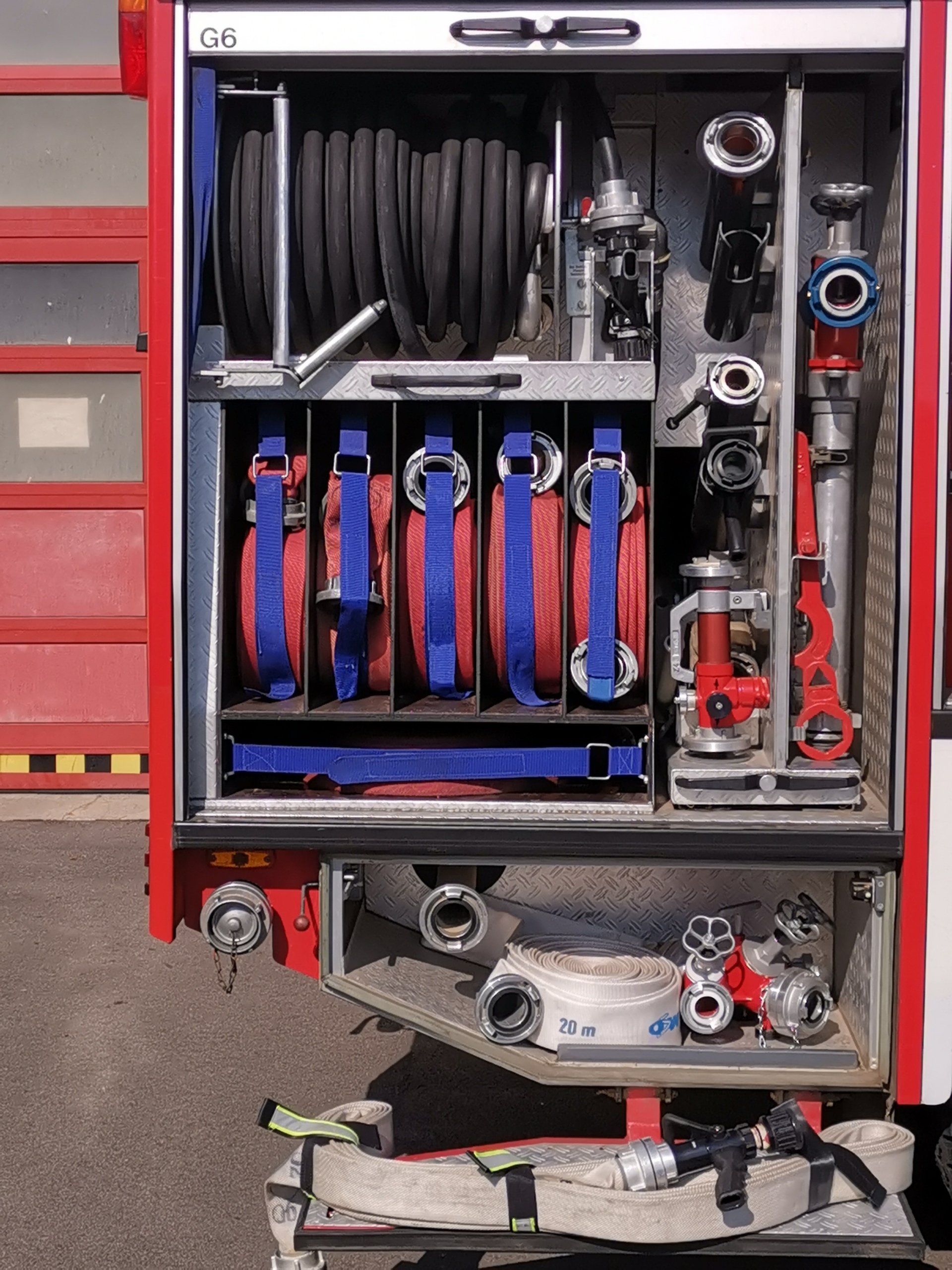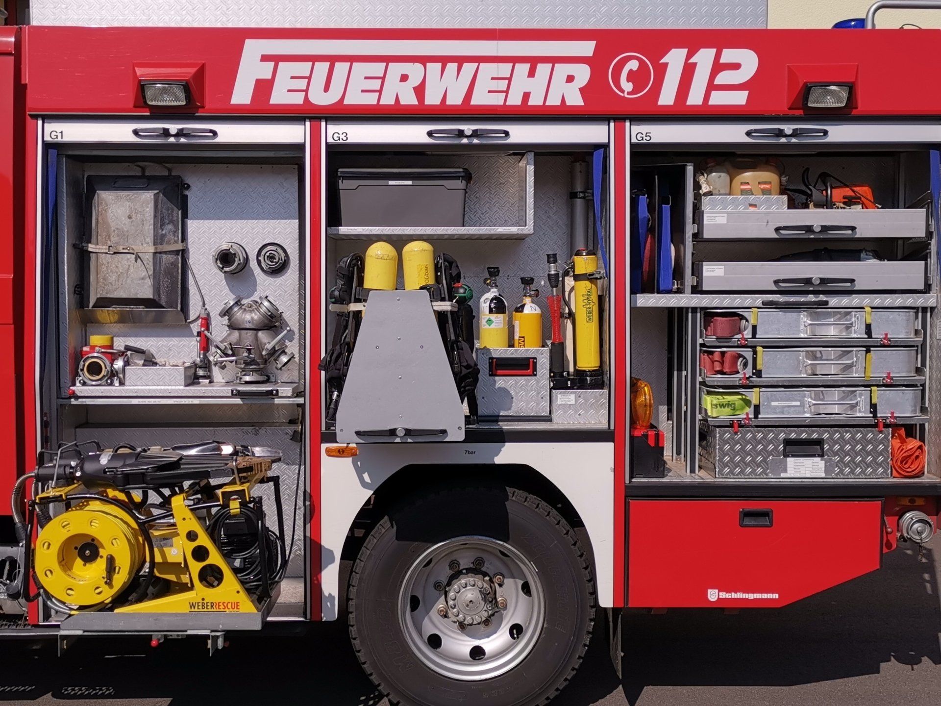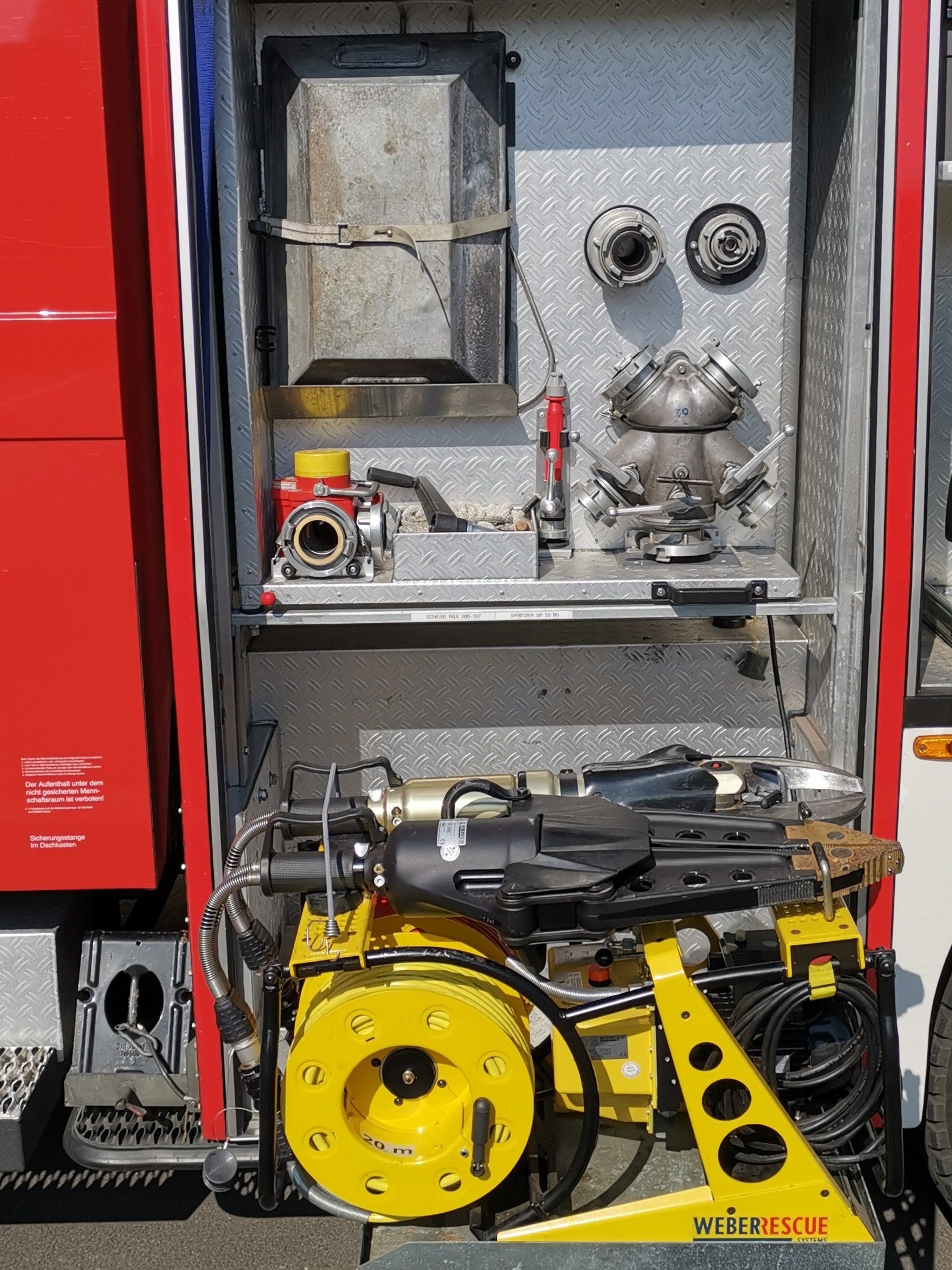 | Zusatzbeladung: | Stromerzeuger 8 KVA, Lichtmast, Beleuchtungssatz, Hydraulischer Rettungssatz, Kettensäge, Trennschleifer, Tauchpumpe, First Responder Rettungsrucksack, Spineboard, Säbelsäge, Türöffnungswerkzeug |